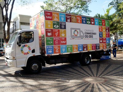 Caminhão dos ODS – Ele percorre várias cidades do Brasil, em diferentes regiões, com o objetivo de promover a prática dos ODS nas cidades, nos estados, nas escolas e nas instituições de ensino superior ou de educação básica.